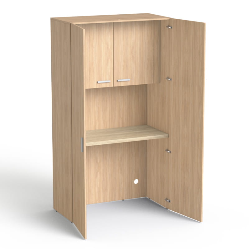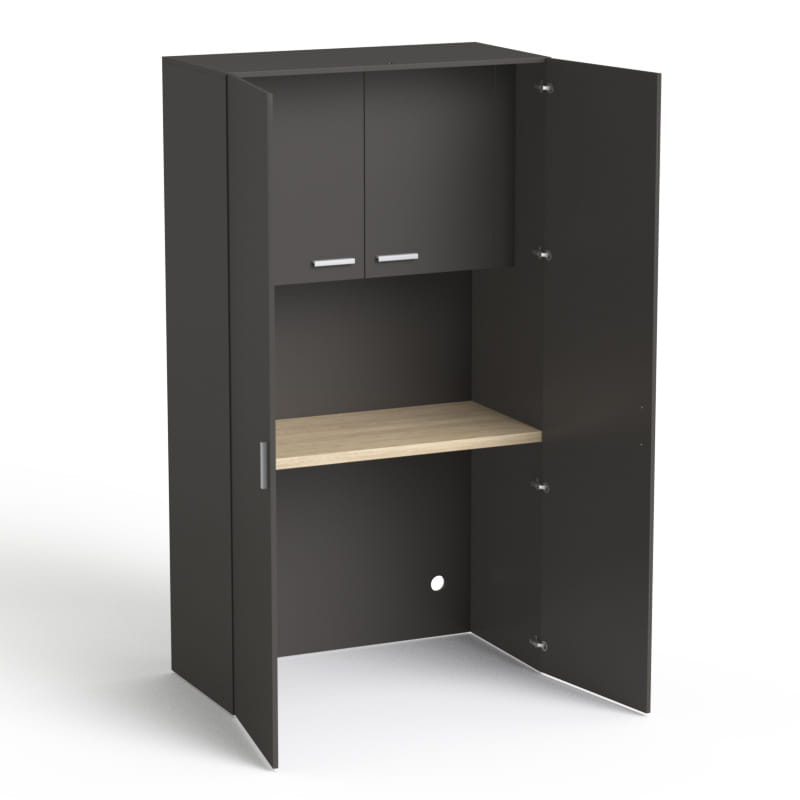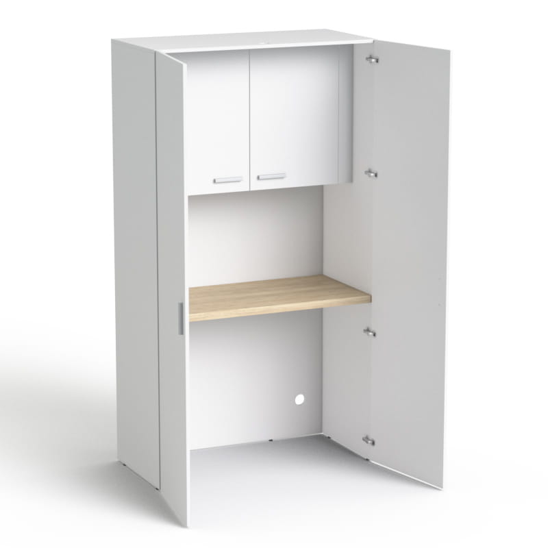 Estetyczne i praktyczne miejsce do biura, salonu kosmetycznego lub małej biurowej kuchni, gdzie można zaparzyć kawę i przechowywać potrzebne naczynia.