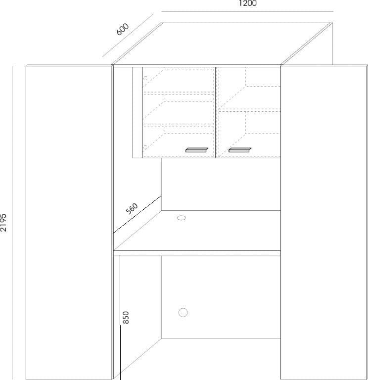 Aneks kuchenny SVK-500 o wymiarach zewnętrznych: szerokość: 120cm, głębokość: 60cm, wysokość: 219,5cm.