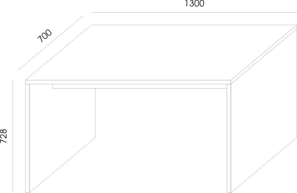 Stół składa się z blatu i dwóch, szerokich nóg z płyty. Całość została wzmocniona podporą blatu, która pomaga utrzymać mebel w odpowiedniej pozycji i zapobiec jego przechylaniu się. Dzięki temu można wygodnie przy nim usiąść.