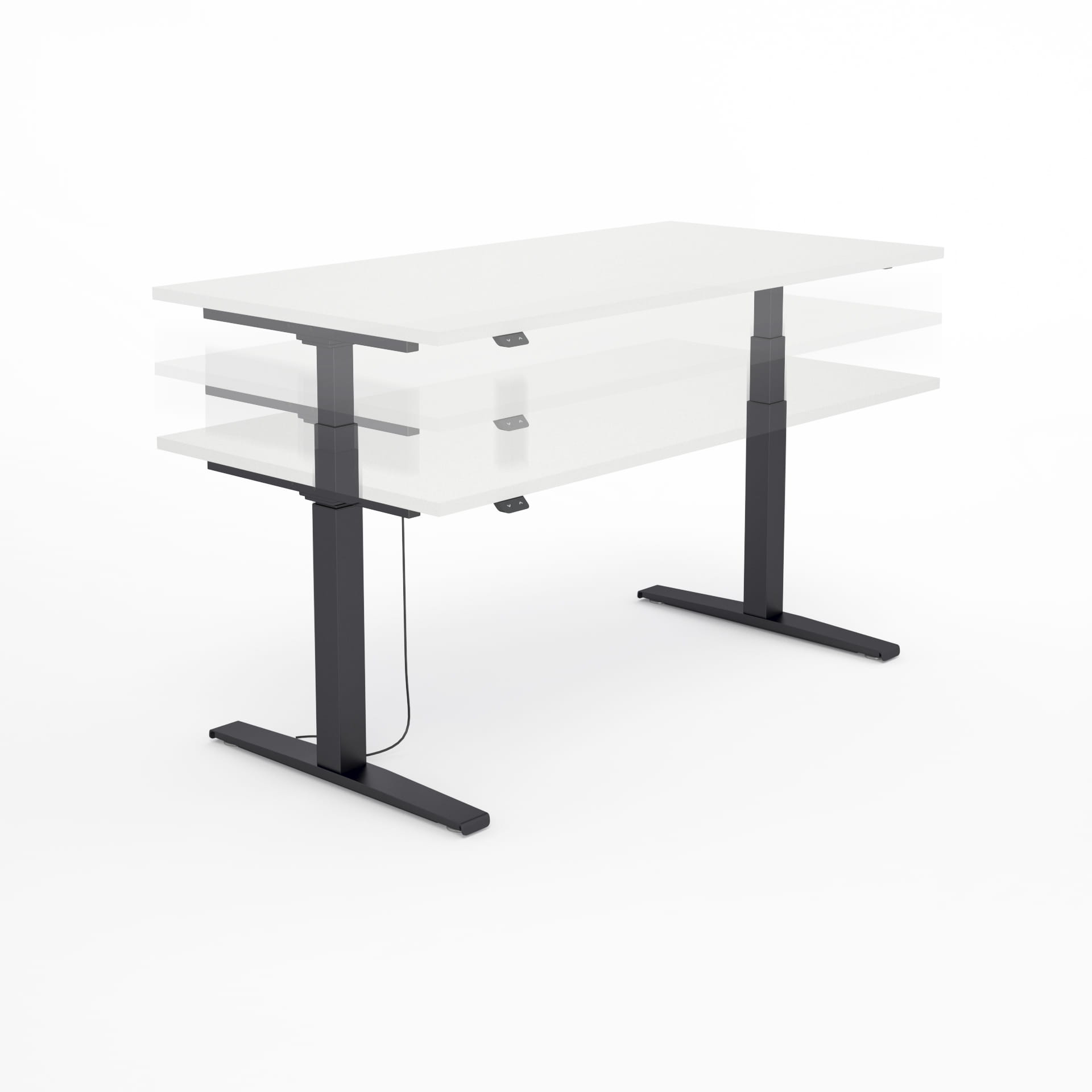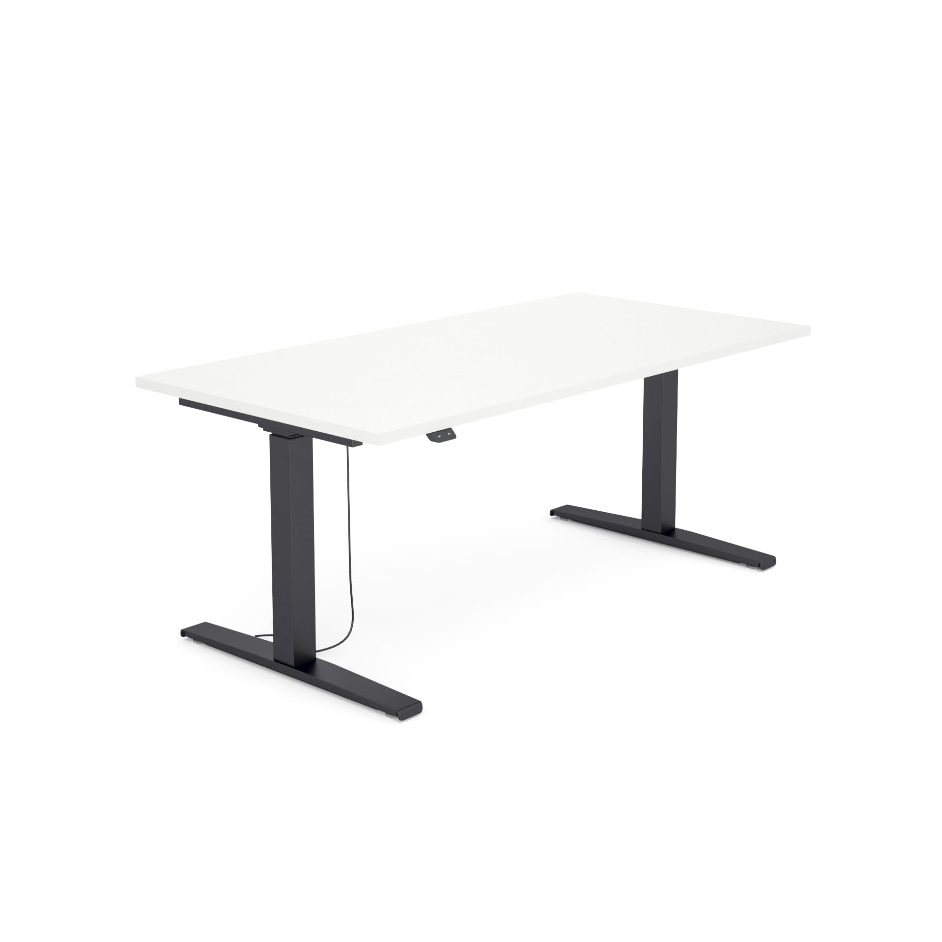 Ergonomiczne biurko z elektryczną regulacją wysokości w zakresie od 65 do 129 cm.