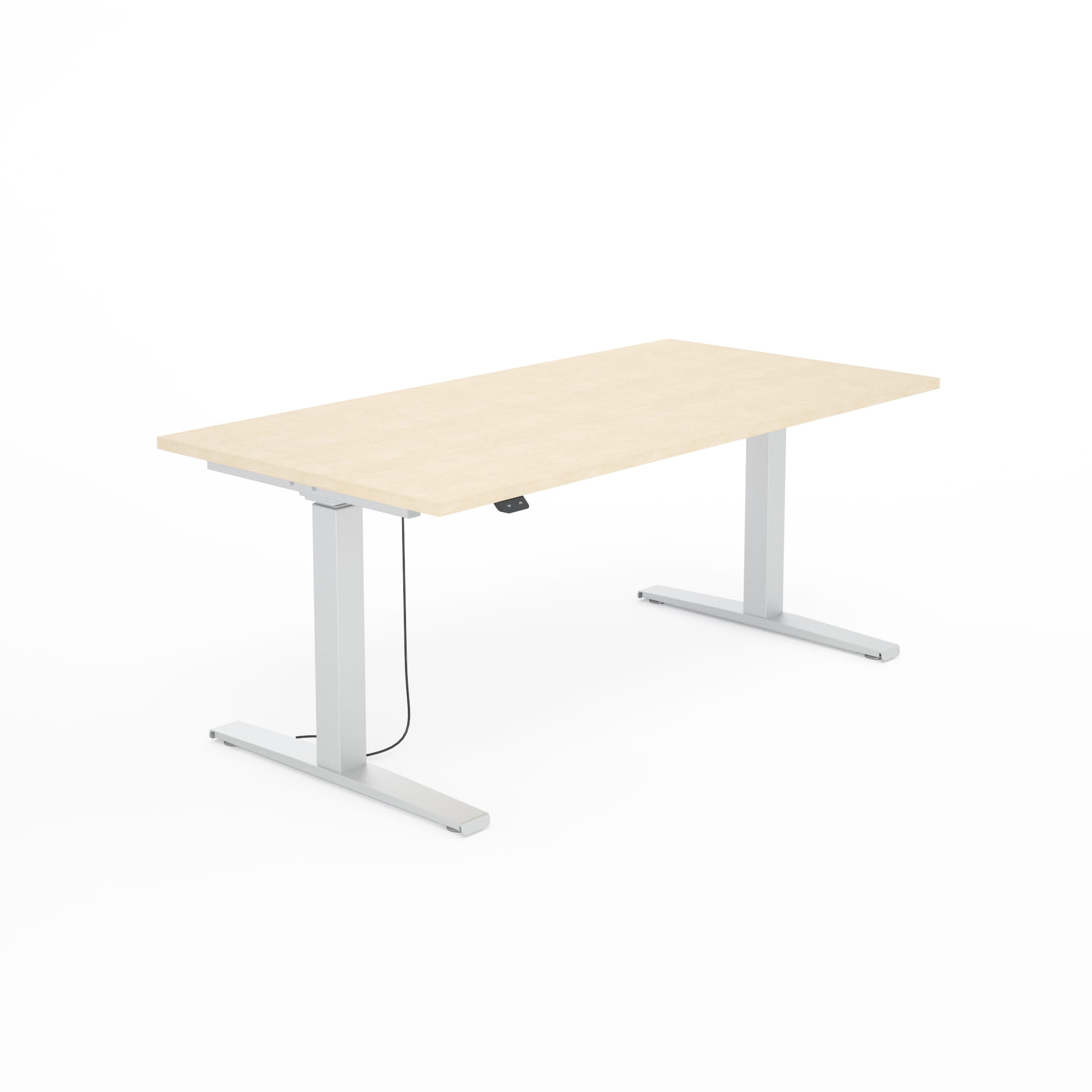 Ergonomiczne biurko z elektryczną regulacją wysokości w zakresie od 65 do 129 cm.