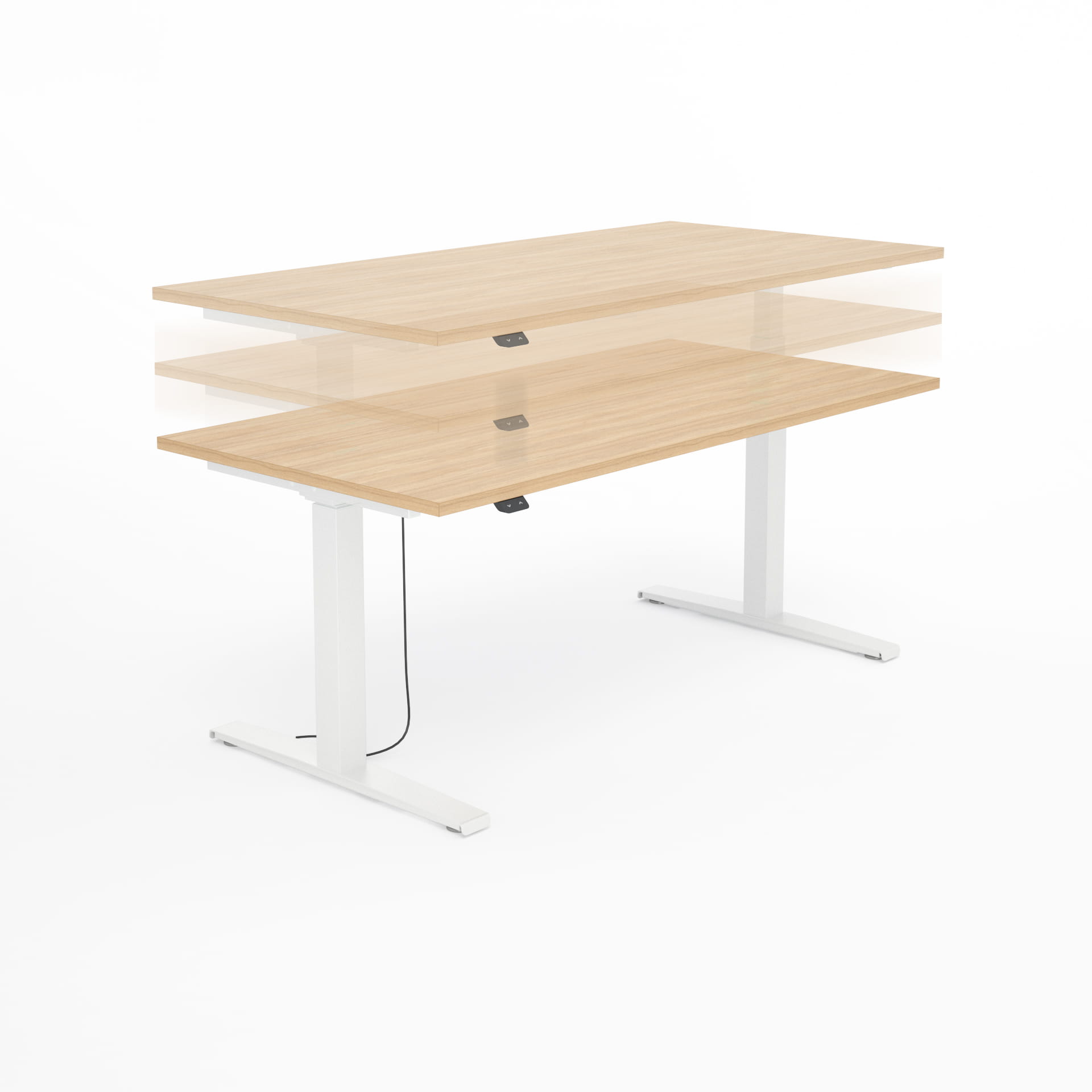 Ergonomiczne biurko z elektryczną regulacją wysokości w zakresie od 65 do 129 cm.