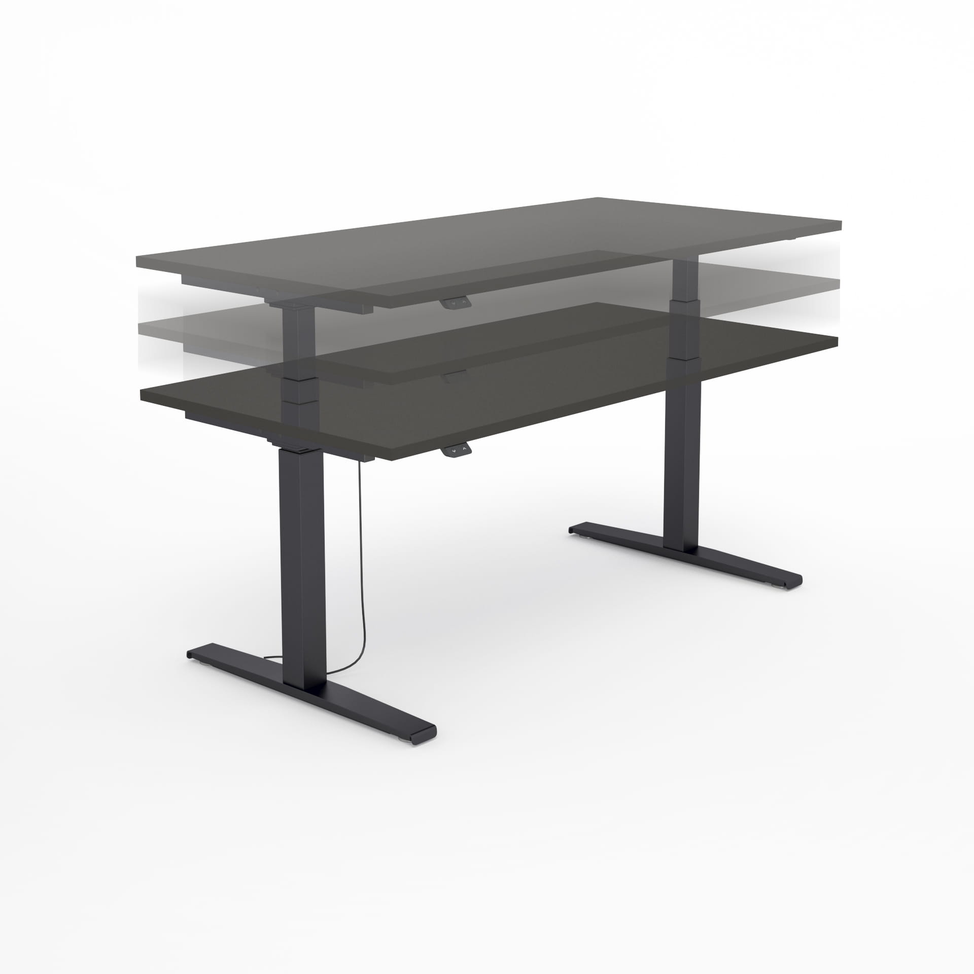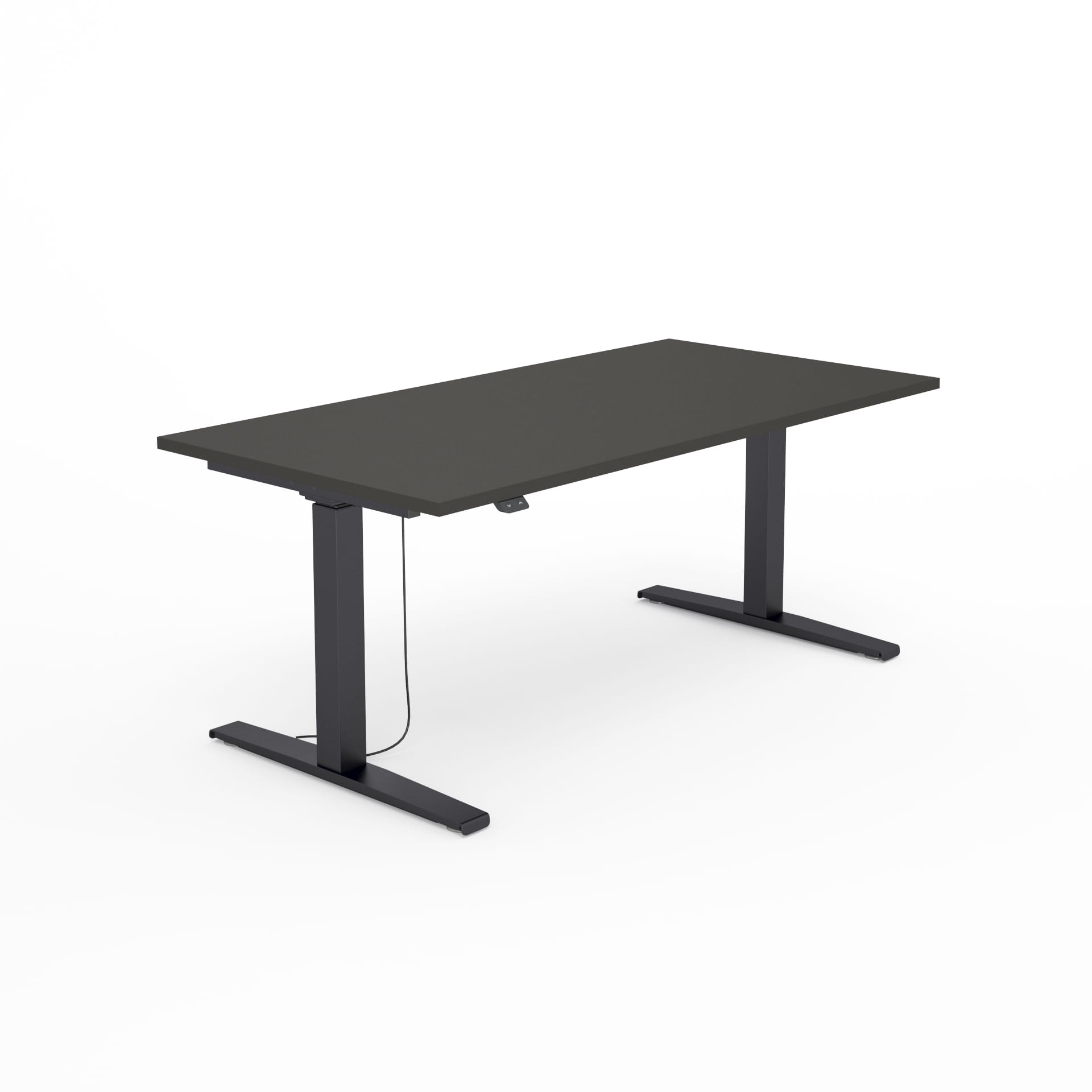 Ergonomiczne biurko z elektryczną regulacją wysokości w zakresie od 65 do 129 cm.