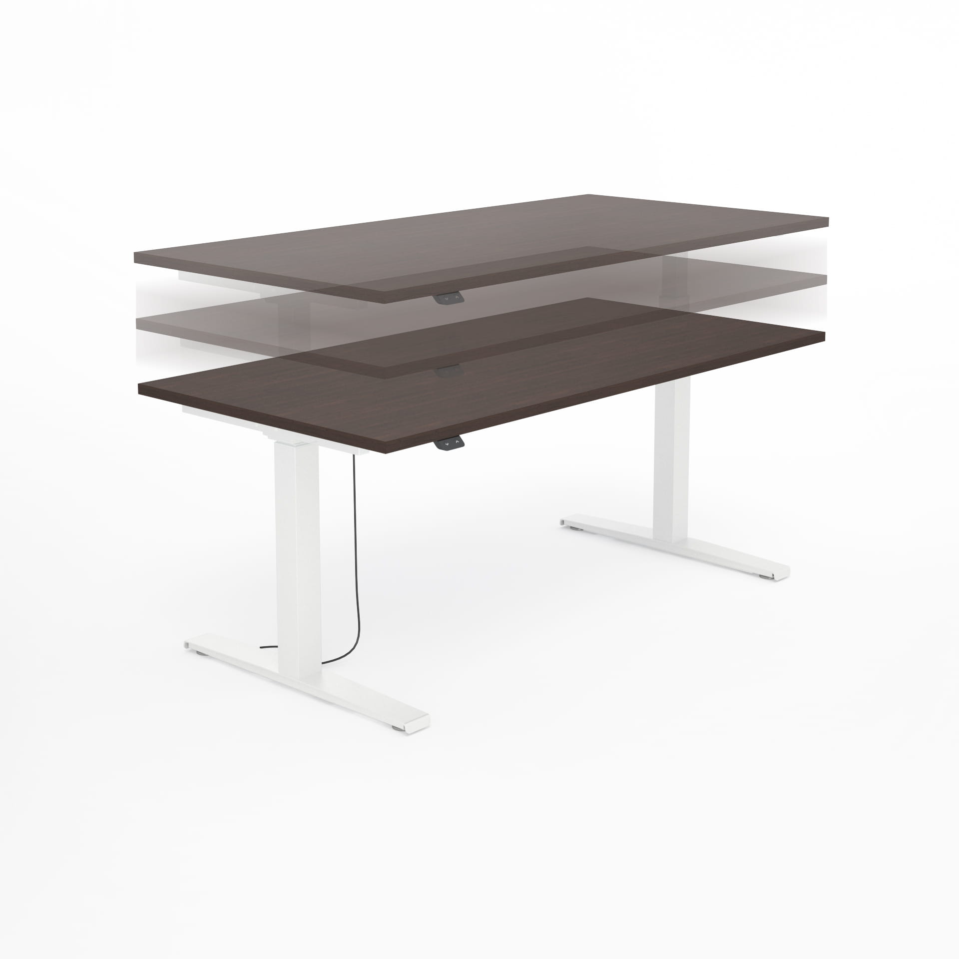 Ergonomiczne biurko z elektryczną regulacją wysokości w zakresie od 65 do 129 cm.