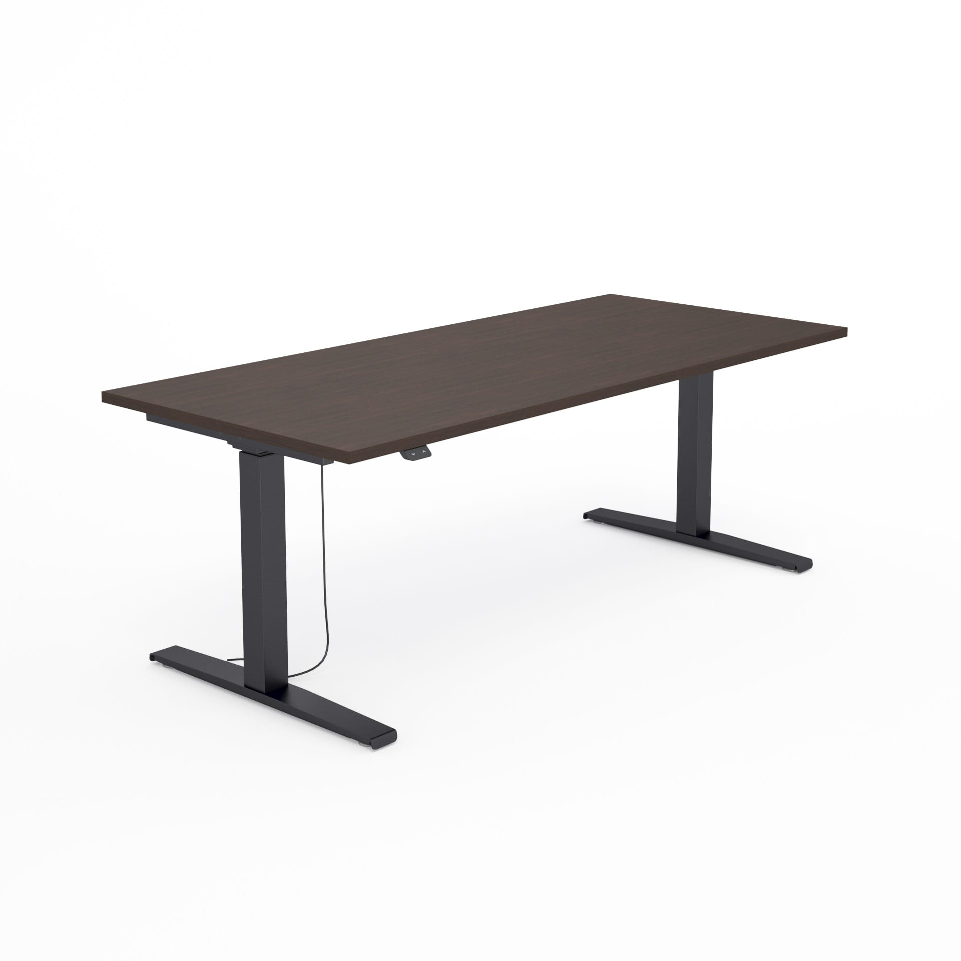 Ergonomiczne biurko z elektryczną regulacją wysokości w zakresie od 65 do 129 cm.