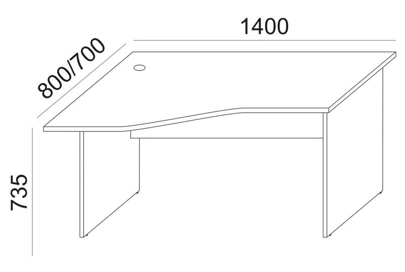 Biurko SV-22 o wymiarach: szerokość:140cm, głębokość: 70/80cm, wysokość: 73,5cm.