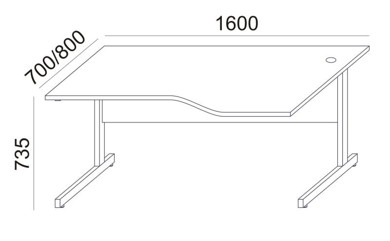 Biurko ma funkcjonalną przelotkę na kable, dzięki czemu w miejscu pracy zostaje zachowany porządek.
