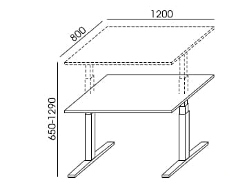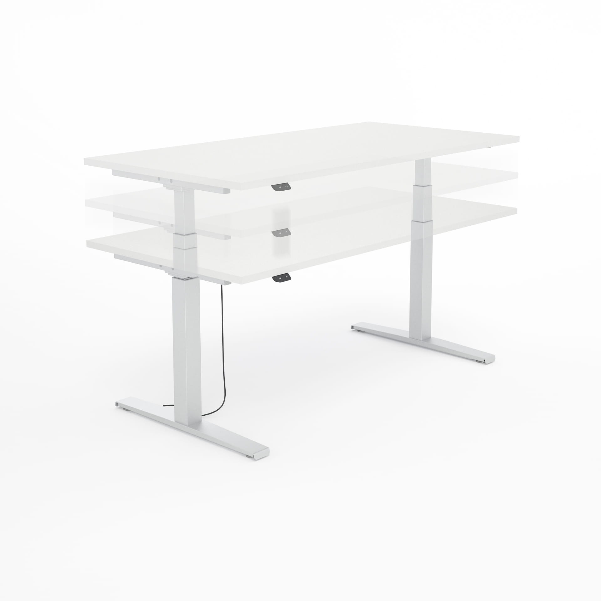 Ergonomiczne biurko z elektryczną regulacją wysokości w zakresie od 65 do 129 cm.