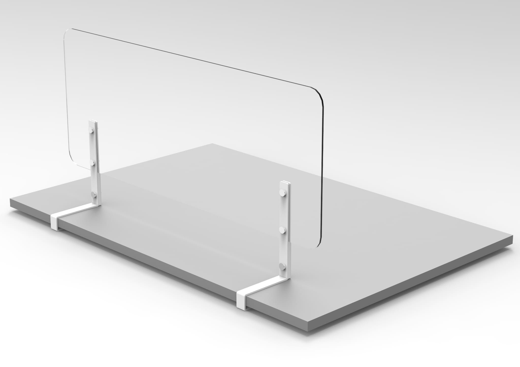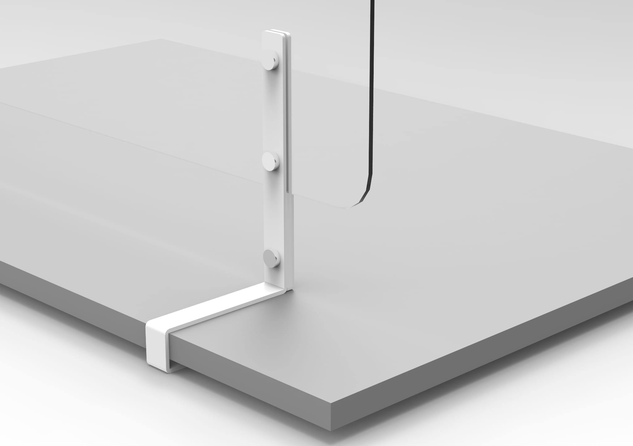 Komplet (2 sztuki) wsporników SV-105 pozwala zamontować osłonę z pleksi (SV-103 lub SV-104) do blatu z płyty melaminowanej o grubości #25 [mm].