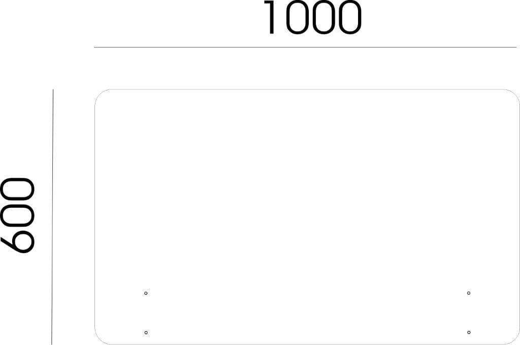 Tafla pleksi o wymiarze 100 na 60cm, starannie wykończone brzegi - narożniki zaokrąglone o promieniu R-50.