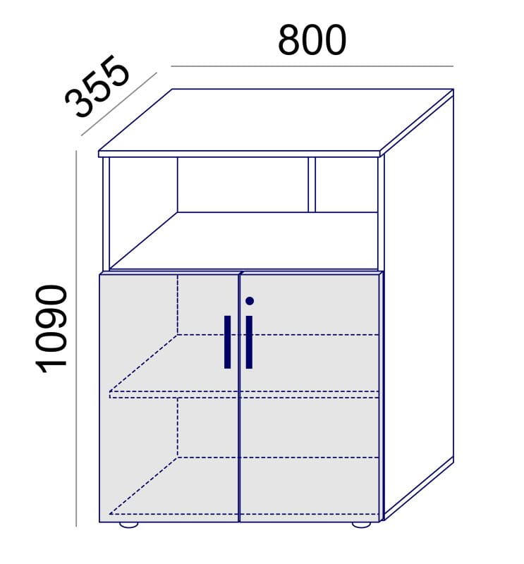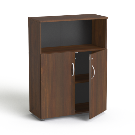 Szafka aktowa z jedną przestrzenią otwartą, dwiema zamykanymi drzwiami skrzydłowymi.