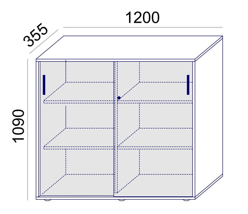 Szafka SV-13 o wymiarach: szerokość: 120cm, głębokość: 35,5cm, wysokość: 109cm.