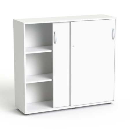 Szafka aktowa zamykana drzwiami przesuwnymi.