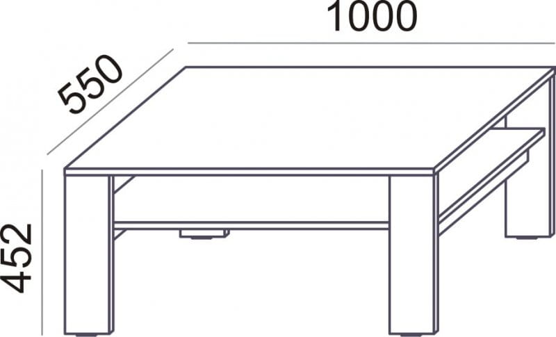 Niski stolik SV-94 o wymiarach: szerokość 100cm, głębokość 55cm, wysokość: 45,2cm