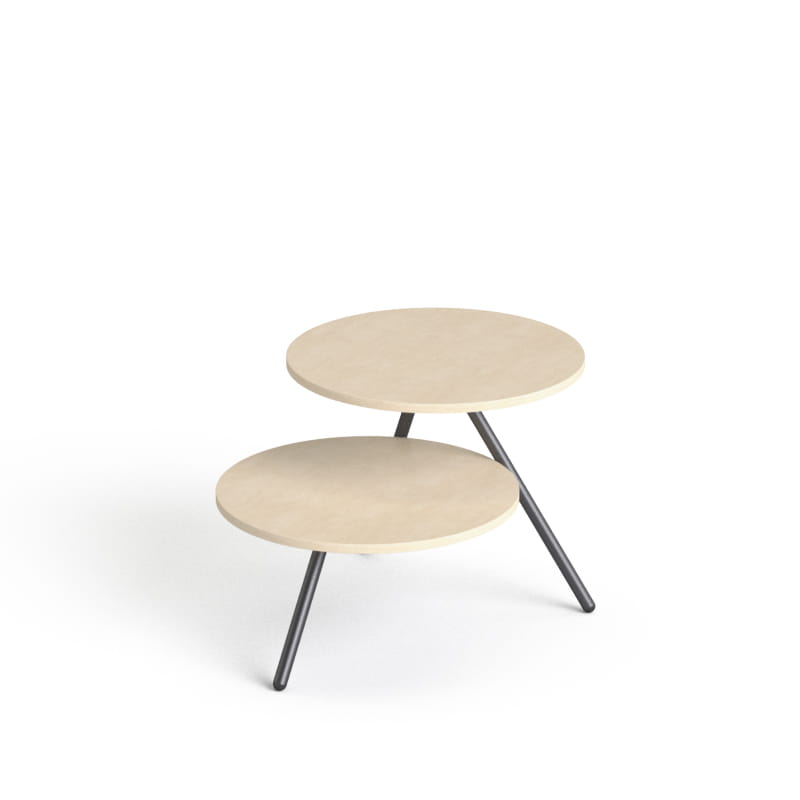 Posiada dwa blaty o średnicach 55 cm, wykonane z 25 mm płyty.