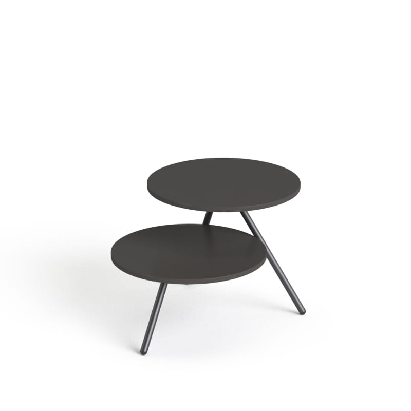 Posiada dwa blaty o średnicach 55 cm, wykonane z 25 mm płyty.