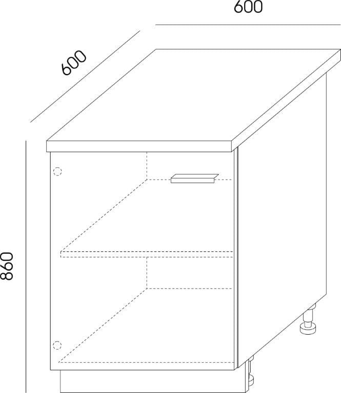 Szafka kuchenna dolna zlewowa SVK-102 o szerokości: 60cm, głębokości: 60cm, wysokości: 86cm (z blatem).
