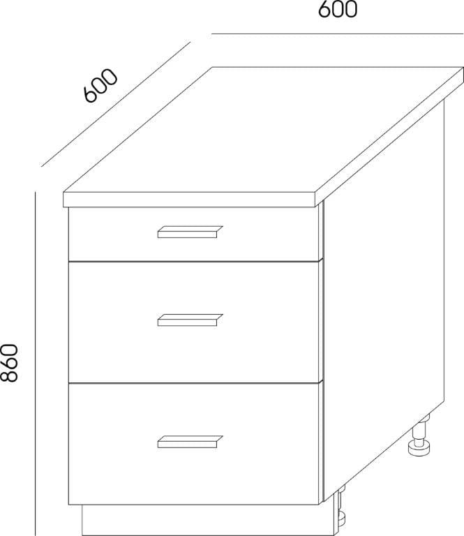 Szafka kuchenna dolna z szufladami SVK-104 o szerokości: 60cm, głębokości: 60cm, wysokości: 86cm (z blatem).