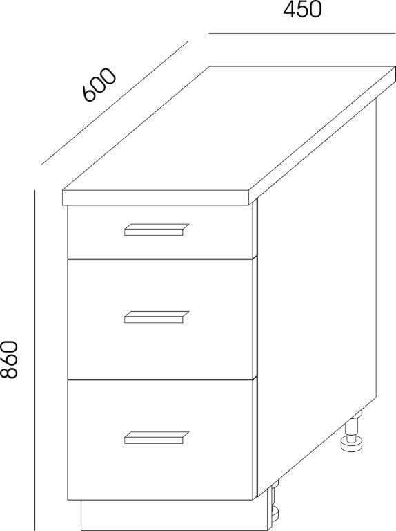 Szafka kuchenna dolna z szufladami SVK-104 o szerokości: 45cm, głębokości: 60cm, wysokości: 86cm (z blatem).