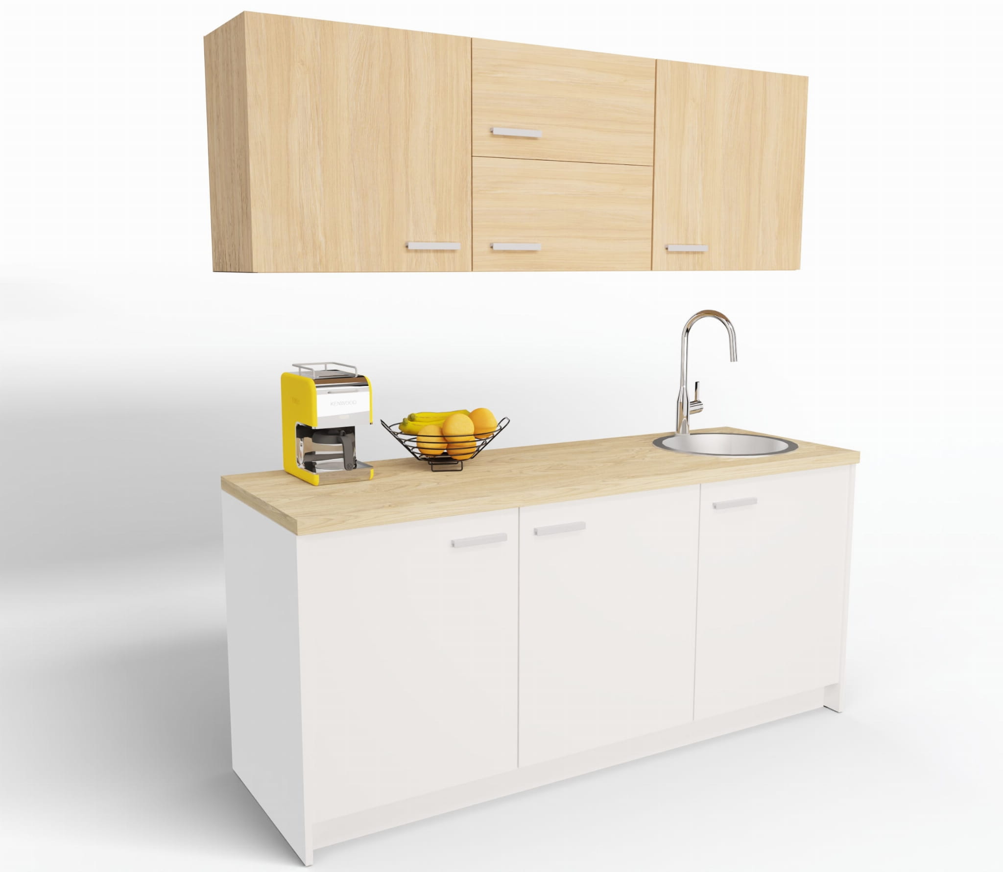 szerokość: 184cm, głębokość szafek dolnych: 60cm, głębokość szafek górnych: 34cm