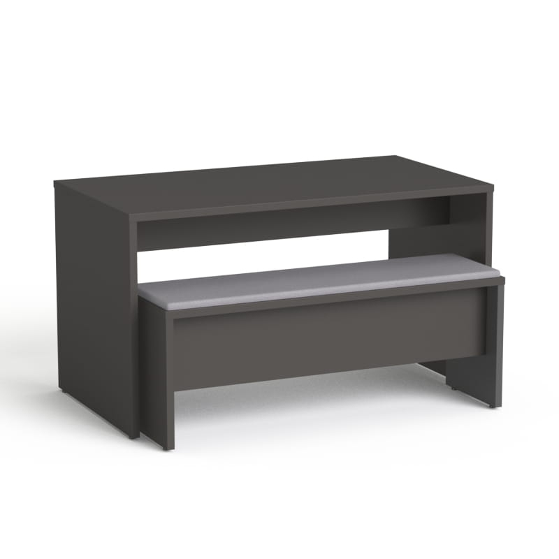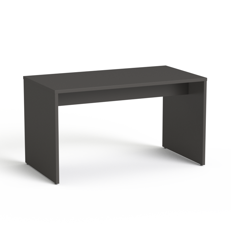Stół SV-114 jest w całości zrobiony z płyty melaminowanej w kolorze grafitowym. Wyróżnia się ona dużą wytrzymałością na działanie czynników mechanicznych i dobrze wygląda mimo upływu czasu. Dodatkowo jest łatwa w czyszczeniu, więc utrzymanie porządku w firmie będzie proste.