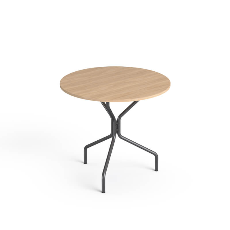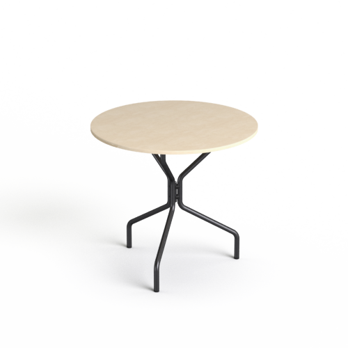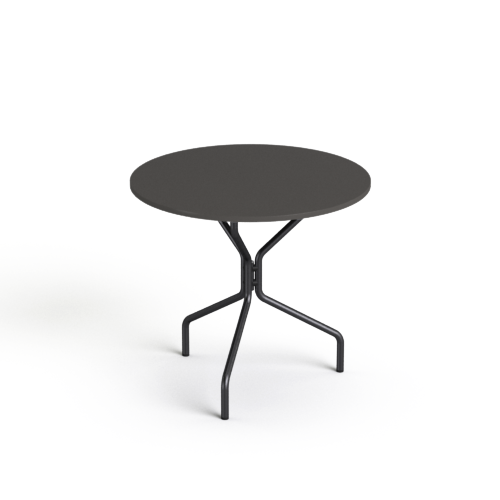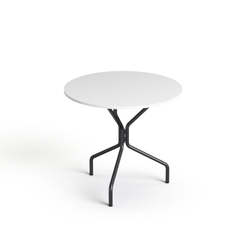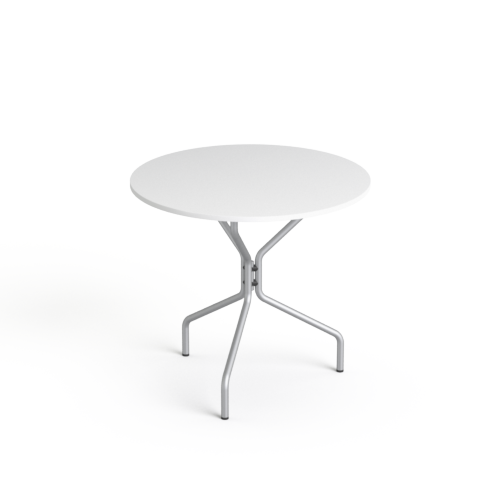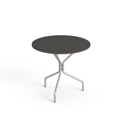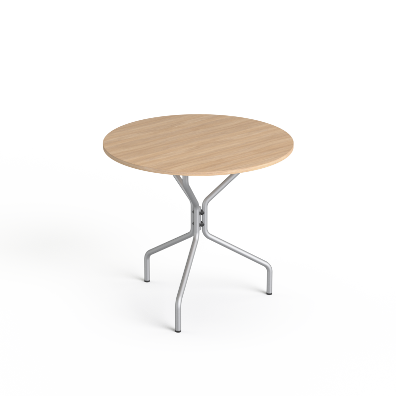 Stolik okrągły o średnicy blatu 80cm, na stelażu metalowym w kolorze srebrnym lub czarnym.