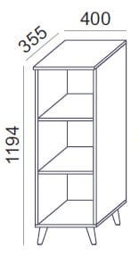 Regał SV-08 o wymiarach: szerokość: 40cm, głębokość: 35,5cm, wysokość: 109/119,4cm.