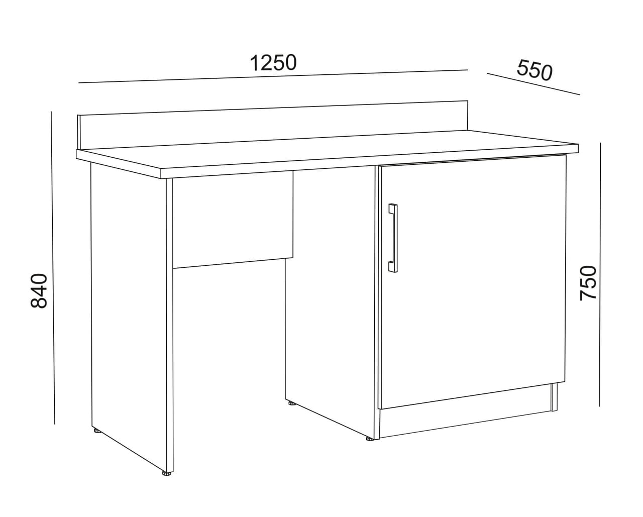 Biurko o wymiarach: długość: 125 cm, głębokość: 55 cm, wysokość 84 cm.